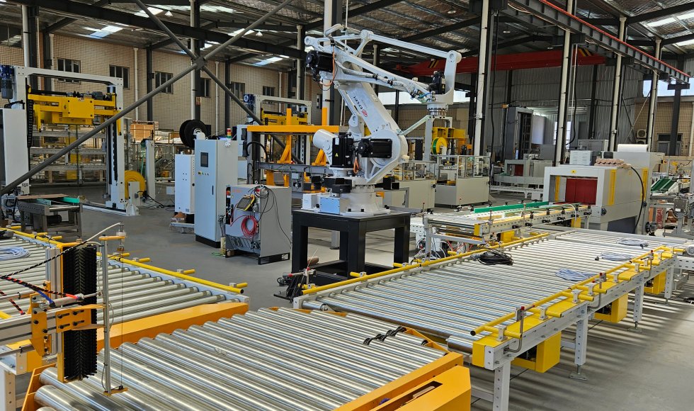 查看詳情燃料棒自動(dòng)套膜收縮碼垛包裝線,主要由輸送機(jī)、視覺(jué)識(shí)別、稱(chēng)重剔除機(jī)、自動(dòng)整理、套膜收縮機(jī)、自動(dòng)供棧機(jī)、機(jī)器人自動(dòng)碼垛機(jī)、全自動(dòng)在線纏繞機(jī)等設(shè)備組合而成。